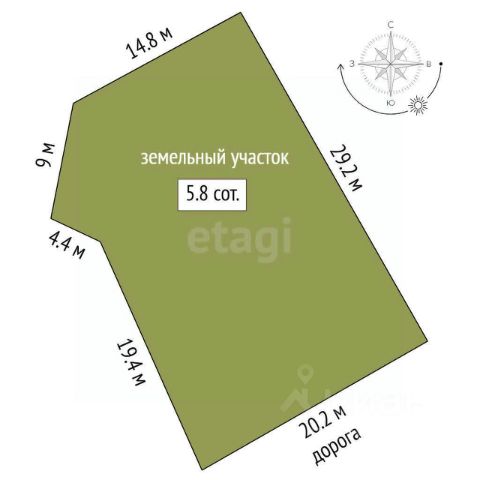• Площадь: 638 квадратных метров (6,38 соток)