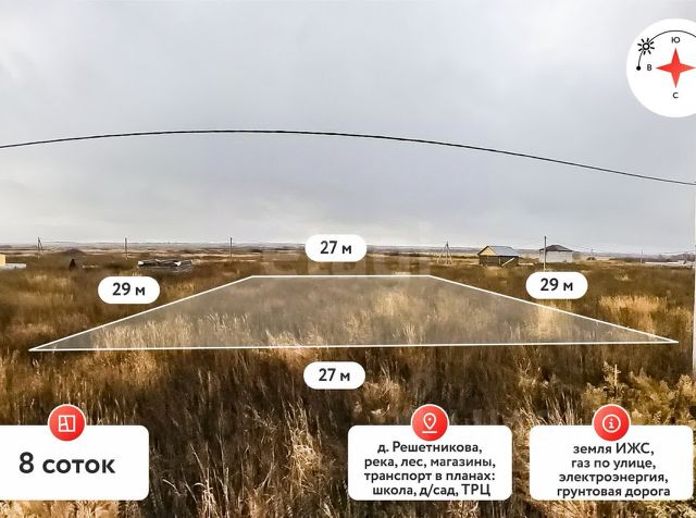 Продается участок для строительства загородного дома в живописном уголке природы! Это уникальная возможность стать владельцем идеального места для реализации ваших мечт о загородной жизни. Основные характеристики: - Размер: 8 соток - Назначение: ИЖС - Локация: Находится в районе Решетникова по Салаирскому тракту, в 15 минутах езды от Тюмени, в будущем будет около 4 км до новой объездной, по которой можно быстро попасть в любую часть города. - Коммуникации: электричество (столб возле участка). - Подъезд: грунт, ходит городской транспорт - Рядом: Недалеко находится база отдыха Верхний Бор, продуктовые и строительные магазины, места для отдыха в парковой зоне, асфальтированная дорога до самого поселка. Почему этот участок идеален для вас? -Это новая нарезка, выделенная для многодетных семей, развитие (запланировано строительство школы и торгового центра, асфальтирование дорог, уличное освещение, центральный водопровод от собственного водозабора и канализация) будет происходить за счет бюджетных средств. Не упустите шанс создать свой идеальный уголок на природе! Звоните сейчас, чтобы договориться о просмотре или задать вопросы. Уверены, этот участок станет вашим настоящим домом вдали от городской суеты! Код пользователя: 61237 Номер в базе: 1719845