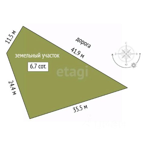 Участок правильной формы, ровный, с хорошим пятном застройки.
