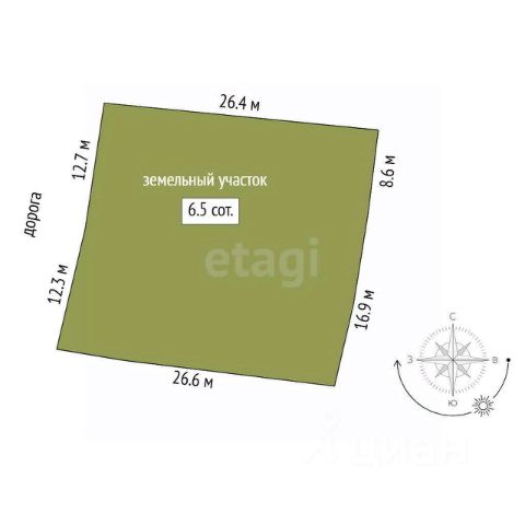 Участок ровный, правильной прямоугольной формы (21,5 х 37,5 м), расположен рядом с новым проектом Кипрея комьюнити, где будет центральный водопровод. Газ на границе участка, электричество заведено (15кВт). На участке посажены: груша, слива, яблоня, клубника. Земли относятся к категории населенных пунктов, с разрешенным использованием для индивидуального жилищного строительства (ИЖС). Межевание выполнено, что упрощает процесс оформления.