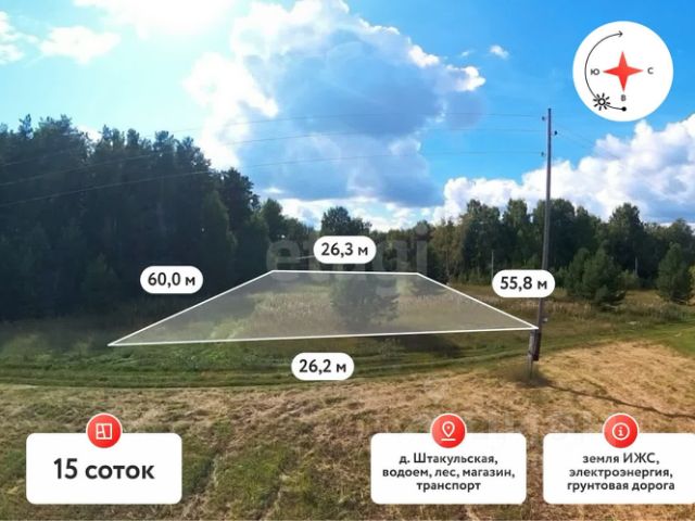 Продается прекрасный участок в д. Штакульская, по Велижанскому тракту, Нижнетавдинского района. Подойдет под строительство загородного дома вашей мечты. Очень красивое, живописное место. Рыбалка, грибы, ягоды. Озера - Штакуль 350 м., озеро Янтык в 5 км., озеро Сундукуль, река Иска в 10 км., все рядом! Тишина и спокойствие от городской суеты. Дорога до деревни асфальтирована. Маршрут автобуса 152 проходит в 2 км от деревни. Ближайшая инфраструктура в с. Тюнево (школа, детский сад, поликлиника, магазины, банки). Категория земель- ИЖС. Код пользователя: 45363 Номер в базе: 9589100