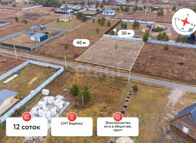 Уважаемые покупатели! Продается земельный участок площадью 12 соток в садовом обществе Березка по Велижанскому тракту. Возможна покупка по Семейной ипотеке с подрядом на строительство дома по ставке 6%! ОБ УЧАСТКЕ: Категория земель - земли сельскохозяйственного назначения. Разрешенное использование - ведение садоводства. Правильная прямоугольная форма 30*40 м. О ЛОКАЦИИ: 30 минут езды от Тюмени по Велижанскому тракту. В садовом обществе есть электричество, отсыпанные дороги и уличное освещение. В соседнем селе Тюнево есть детский сад, школа, дом культуры, супермаркеты Магнит и Пятерочка, ПВЗ маркетплейсов. Один взрослый собственник, никаких обременений. Звоните! Код пользователя: 100598 Номер в базе: 10231768