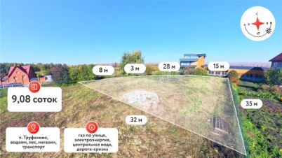 Участок правильной формы, ровный, с хорошим пятном застройки.