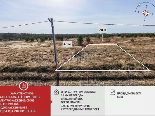Продается участок 8 соток (20x40 м) — идеальное место для вашего будущего дома! Преимущества: - Форма: Правильная, ровная поверхность — без бугров - Расположение: Высокое место, не затопляет — отсыпка не требуется - Ограждение: Участок огорожен с двух сторон для вашей безопасности - Коммуникации: Электричество рядом; газ — после постройки дома Этот участок идеально подходит для строительства. В начале улицы расположен продуктовый магазин, что добавляет удобства в повседневной жизни! Не упустите возможность стать владельцем этого шикарного места! Оно точно стоит своих денег! Звоните или пишите прямо сейчас! Дополнительно оплачивается комиссия с покупателя. Номер объекта: 3880863