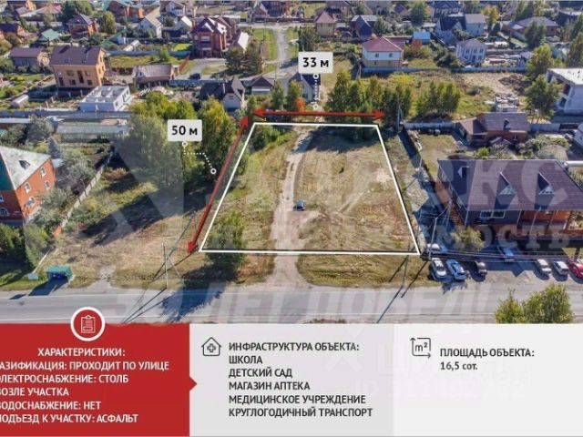 Свобода для творчества: Участок в 16,5 соток предоставляет неограниченные возможности для проектирования: от коттеджа с индивидуальной архитектурой до создания полноценной усадьбы с садом, огородом, зоной отдыха с бассейном и детской площадкой.