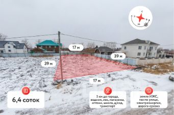 ОБЪЕКТ: земельный участок площадью 6,4 сот. НЮАНСЫ: есть доступ к подключению центрального водопровода, газа . Улицы широкие с освещением, в зимний период дороги чистят регулярно, все соседи проживают круглый год. Инфраструктура: - Развязка по ул. Щербакова позволяет быстро добраться до Центра ( по ул.Челюскинцев) - 10мин, ТРЦ "СитиМолл" - 15 мин на автомобиле; - Автобусные маршруты в пешеходной доступности остановка по ул. Щербакова. В настоящее время на соседней улице начинают строить новую школу, детские сады, магазины, аптеки находятся в непосредственной близости МЫ ГАРАНТИРУЕМ ФИНАНСОВУЮ БЕЗОПАСНОСТЬ ДЛЯ НАШИХ КЛИЕНТОВ. Код пользователя: 14272 Номер в базе: 1179785 Продам земельный участок в микрорайоне Велижанский в городе Тюмень.