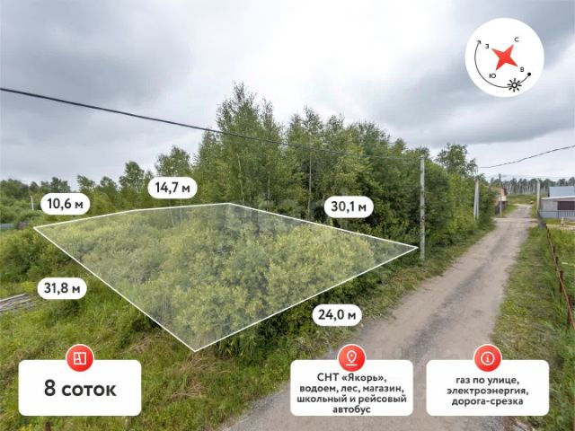 Предлагаю Вашему вниманию земельный участок, расположенный недалеко от базы отдыха Верхний Бор по Салаирскому тракту. Участок ровный, чистый. до центра города 15 минут на автомобиле. К участку проведены газ и электричество. Соседи проживают круглогодично, дорогу в зимний период чистят. Красивое и удобное место для строительства загородного дома, прописка город Тюмень. Категория земель- земли поселений (населённых пунктов). Ходит городской транспорт. Живописное место в экологически чистом районе. МЫ ГАРАНТИРУЕМ ФИНАНСОВУЮ БЕЗОПАСНОСТЬ ДЛЯ НАШИХ КЛИЕНТОВ. Код пользователя: 92359 Номер в базе: 1713332 Продам земельный участок в садовом товариществе Якорь в городе Тюмень.