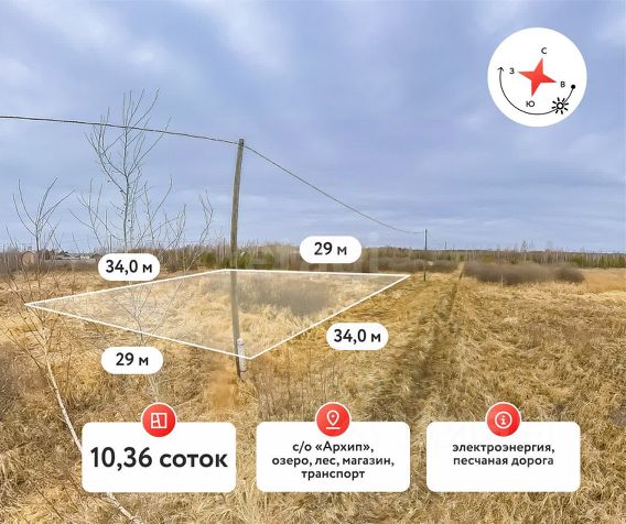 Мечтаете о собственном уголке, где тишина и свежий воздух станут вашими постоянными спутниками? Представьте себе просторный участок площадью 10,7 соток в живописном месте Тюменской области! Этот участок находится в садоводческом обществе "Архип", всего в 20 км от города. Близость леса и озера делает это место идеальным для тех, кто ценит спокойствие и гармонию с природой, но не хочет отказываться от удобств городской жизни. Участок расположен на возвышенности, на нем уже есть бытовка, а также растут березы и ели, создавая уютную атмосферу. Удобный подъезд к участку, который всегда чистится, гарантирует доступ в любое время года. Угловое расположение участка обеспечивает больше приватности. Электричество уже подключено! Газ находится всего в 1 км, что позволяет легко организовать комфортное проживание с минимальными затратами. Не упустите свой шанс! Свяжитесь с нами прямо сейчас и сделайте первый шаг к созданию своего идеального места для жизни и отдыха! Номер предложения: 57697.