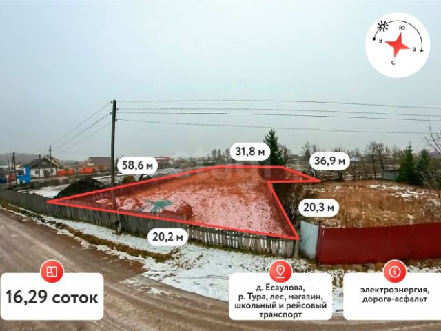 Продается великолепный участок площадью 8 соток в живописной деревне Есаулова, всего в 21 км от bustling города! Это идеальное место для реализации вашей мечты о собственном доме, где вы сможете наслаждаться спокойствием природы и комфортом городской жизни. Преимущества нашего предложения: - **Участок правильной формы**: 8 соток ровной земли — идеальное пространство для строительства вашего уютного дома. - **Плодородная почва**: здесь вы сможете создать свой собственный сад или огород, наслаждаясь свежими овощами и фруктами прямо с грядки. - **Коммуникации**: электричество и газ уже подведены к улице, что значительно упростит процесс подключения необходимых удобств. **Инфраструктура**: - **Удобный подъезд**: дороги отсыпаны песком, что обеспечивает легкий доступ к участку в любое время года. - **Общественный транспорт**: всего в 500 метрах находится остановка, что делает поездки в город быстрыми и удобными. - **Магазины и услуги**: все необходимое для комфортной жизни находится в шаговой доступности. - **Природа рядом**: река Тура всего в 500 метрах — идеальное место для отдыха, рыбалки и прогулок на свежем воздухе. Всего 20 минут на машине отделяют вас от города, но вы будете наслаждаться тишиной и спокойствием загородной жизни. Не упустите уникальную возможность стать владельцем этого замечательного участка! Звоните прямо сейчас, чтобы записаться на просмотр и задать все интересующие вопросы. Ваша мечта о собственном доме начинается здесь! МЫ ГАРАНТИРУЕМ ФИНАНСОВУЮ БЕЗОПАСНОСТЬ ДЛЯ НАШИХ КЛИЕНТОВ. Код пользователя: 88381 Номер в базе: 5867026