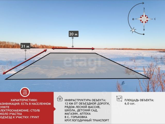 Продается ПЕРСПЕКТИВНЫЙ УЧАСТОК в муниципальном образовании Горьковка, недалеко от ЖК Крылья! Площадь участка 6,4 сотки, он имеет правильную прямоугольную форму. Рaзpешeнноe иcпользoваниe: для ведeния личнoгo пoдсoбногo хoзяйствa. Подъезд со стороны с. Горьковка 2,5 км по грунтовой дороге. В настоящее время уже установлены опоры линии электропередач. Газ в 800 метрах от земельного участка. Купив этот участок сейчас, вы сделаете выгодную инвестицию в свое будущее. Месторасположение участка имеет огромный потенциал для роста цен, соседство с современный жилым комплексом "Крылья", обеспечит отличную инфраструктуру и доступность всех необходимых удобств. В течение 5 лет будет являться одним из перспективных районов для загородного строительства. Экологически чистое место. До города можно доехать за 20 минут на автомобиле. Поэтому не упустите возможность приобрести его по привлекательной цене! Звоните! #земельныеучастки #купитьучасток #участкивгорьковке МЫ ГАРАНТИРУЕМ ФИНАНСОВУЮ БЕЗОПАСНОСТЬ ДЛЯ НАШИХ КЛИЕНТОВ. Код пользователя: 124825 Номер в базе: 1792487