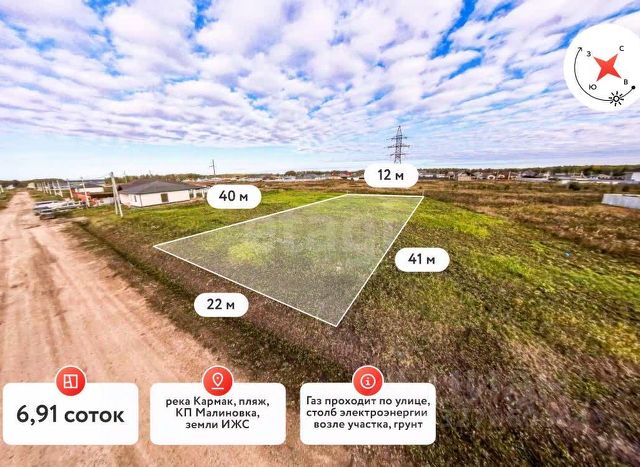 Участок в КП Малиновка с пляжем на р. Кармак. Газ, свет, забор. Московский тракт. Ключевые преимущества: Локация: Развивающийся коттеджный поселок на Московском тракту. Отличная транспортная доступность. Своя инфраструктура: Собственный песчаный пляж на реке Кармак, мангальная зона с шезлонгами, спортивная и детская площадки. 100% готовность к стройке: Участок ровный, огорожен, сделан заезд. Подведены газ и электричество (остался финальный ввод на участок). Без лишних хлопот: На территории установлена бытовка 5х2 м. Безопасность: Поселок закрыт, въезд через автоматические ворота по звонку. Ночное уличное освещение. Удобство: Участок расположен прямо на главной дороге от ворот. Соседи напротив живут постоянно — поселок "живой". Описание: Участок полностью подготовлен для начала строительства вашего дома. Все сложные и затратные работы по подводу коммуникаций и планировке территории уже выполнены. Вы можете сразу приступать к стройке, параллельно наслаждаясь отдыхом на берегу реки с развитой инфраструктурой поселка. Идеальный вариант для тех, кто ценит время, комфорт и хочет сразу жить на природе, не теряя связи с городом. Номер предложения: 57606.