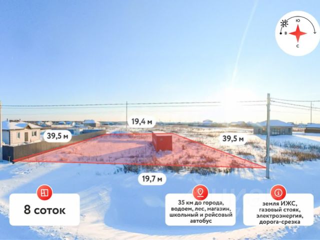 Участок площадью 730 кв. м (1939 м) расположен в живописном месте рядом с рекой Кармак, что открывает возможности для купания и рыбалки прямо у дома. Прямоугольная форма участка и ровный рельеф упрощают планировку и строительство. Подведено электричество — рядом установлен столб с подключенным счетчиком, что сокращает время и затраты на организацию энергоснабжения. Подъезд к участку асфальтирован, заезд обустроен, уложена водоотводная труба, что исключает проблемы с подтоплением. Возможно приобрести еще 3 смежных участка. Соседи с одной стороны уже построились. Расположение сочетает преимущества загородной жизни с близостью к городской инфраструктуре. В пешей доступности продуктовый магазин, остановка общественного транспорта и фельдшерско-акушерский пункт, а также пункт выдачи OZON для удобства онлайн-покупок. Расстояние до Тюмени составляет 1520 минут по четырехполосной дороге, что делает участок удобным вариантом для тех, кто ценит баланс между тишиной природы и доступностью города. Участок подходит для строительства частного дома, дачи или организации зоны отдыха. Отсутствие сложного рельефа и готовые коммуникации сокращают сроки ввода объекта в эксплуатацию. Близость водоема и развитая инфраструктура повышают инвестиционную привлекательность — это перспективный вариант как для постоянного проживания, так и для сезонного использования. Участок готов к освоению: остается выбрать проект и приступить к строительству. МЫ ГАРАНТИРУЕМ ФИНАНСОВУЮ БЕЗОПАСНОСТЬ ДЛЯ НАШИХ КЛИЕНТОВ. Код пользователя: 187160 Номер в базе: 9700622