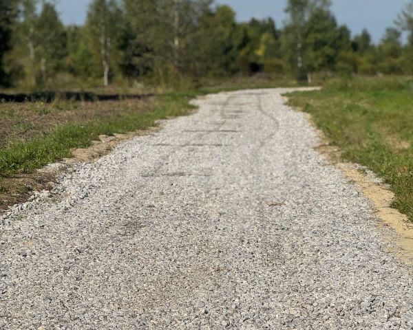 Электрический столб расположен рядом с участком, подъезд к участку- грунтовая дорога, опсыпанная щебнем.