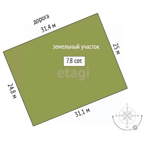 Площадь 7,84 сотки правильной формы — можно объединить с соседними участками до 24 соток (межевание от 10 тыс. руб.).