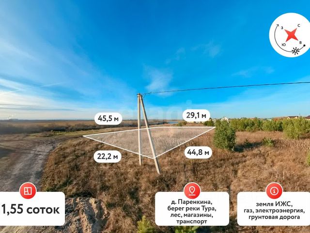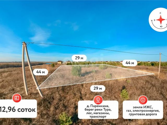 Покупай сейчас - плати потом! На данный объект доступна рассрочка на выгодных условиях Срочная продажа ! Продается участок в востребованном районе . Коттеджный поселок имеет свою развитую инфраструктуру и хорошую транспортную развязку, к нему можно легко добраться, вы будете так же доступны для друзей и близких проживая на природе. Земельные участки и готовые дома с коммуникациями (газ, электричество). Уличное освещение на территории всего поселка, чувство безопасности и уюта. Детская и спортивная площадки для различных возрастных групп. Высокий берег Туры Участки на расстоянии 50 - 400м от воды. Большая прогулочная зона вдоль реки. Посёлок находится в живописном месте, неподалеку сосновый бор. Видеонаблюдение по всему периметру поселка, на въезде установлен шлагбаум. Здесь раздолье для любителей охоты, туризма и активного образа жизни. Просмотр возможен в любое время ! МЫ ГАРАНТИРУЕМ ФИНАНСОВУЮ БЕЗОПАСНОСТЬ ДЛЯ НАШИХ КЛИЕНТОВ. Код пользователя: 78643 Номер в базе: 1906490