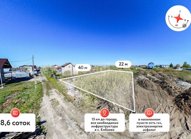 Напротив с. Ембаево (граничит с КП "Грин-Парк", СНТ "Романтик").
