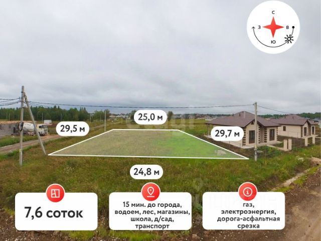 Продается земельный участок площадью 11,08 соток в КП "Канада" в районе д. Ушакова. Расстояние от развязки Московского тракта всего составляет 18 км. Участок высоки, ровный, прямоугольной формы, не требующий отсыпки. По фасаду ширина земельного участка составляет 26,4 м. Расположен на второй линии. Вблизи с участком установлен электрический столб и газовый стояк. К участку ведет достаточно широкая дорога в твердом исполнении. В населенном пункте ведется активное строительство, улица практически застроена. Неподалеку от дома расположен продуктовый магазин, автомойка. Рядом с поселком остановка общественного транспорта. От автовокзала ходят автобусы: 111, 109, 309, 310, 311. В селе Перевалово и в деревне Ушаково находятся Переваловская средняя общеобразовательная школа и детские сады. До школы развозку осуществляет школьный автобус. Больница 19 находится в с. Перевалово. Все необходимые магазины расположены в с. Перевалово и д. Ушаково: ТЦ Магнит, Светофор, пункты выдачи товаров wildberries и ozon. др. магазины.