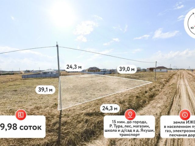 Покупай сейчас - плати потом! На данный объект доступна рассрочка на выгодных условиях Продается участок 10 соток в д. Якуши идеальное место для строительства загородного дома! Этот участок станет прекрасной основой для комфортной жизни в экологически чистом районе, всего в 19 км от Тюмени по Старо-Тобольскому тракту. Размер 2834 м, территория свободна от построек, идеально подходит для строительства дома вашей мечты. Ключевые преимущества: Коммуникации рядом: по границе участка проходят газ и электричество. Современные условия: асфальтированные улицы, тротуары, уличное освещение. Живописная природа: в 1 км чистое озеро, в 1,5 км река Тура, где можно наслаждаться отдыхом, рыбалкой и прогулками. Развитая инфраструктура: поселок активно застраивается, все соседи живут круглый год. В будущем планируется строительство детского сада, школы, торгового центра, сквера и дома культуры. Отдых и здоровье: в шаговой доступности база отдыха "Удача" с горячими источниками, где можно расслабиться в любое время года. Удобная транспортная доступность: общественный транспорт ходит регулярно, остановка в пешей доступности. До Тюмени можно доехать всего за 20 минут. Этот участок станет отличным выбором для тех, кто хочет жить на природе, но при этом иметь все удобства города рядом. Звоните отвечу на вопросы и организую просмотр в удобное для вас время! МЫ ГАРАНТИРУЕМ ФИНАНСОВУЮ БЕЗОПАСНОСТЬ ДЛЯ НАШИХ КЛИЕНТОВ. Код пользователя: 154845 Номер в базе: 1450775