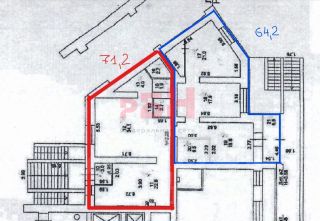 Предлагается в аренду торгово-офисное помещение, площадью 64,2 кв.м. Соседи: Бристоль, ПВЗ, салон красоты. На планировке обведено синим цветом.