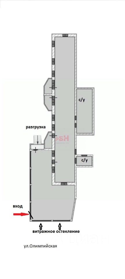 - центральный вход с ул. Олимпийская, + разгрузка;