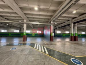огромная парковка возле здания склада;