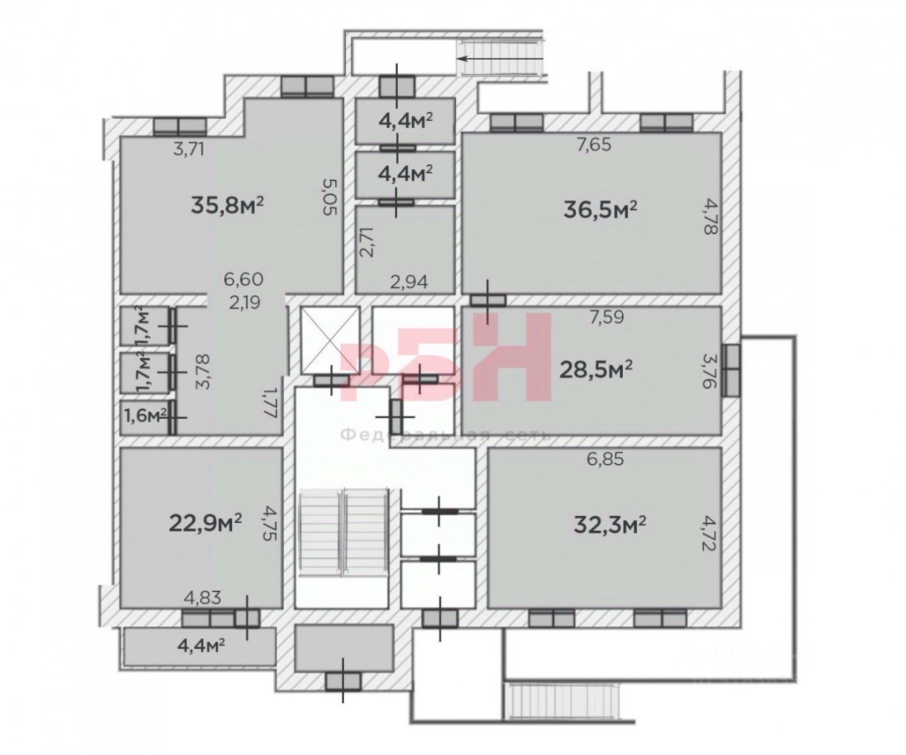 качественный ремонт, 4 кабинета правильной прямоугольной формы с окнами +кухня + склад;