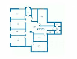 7 кабинетов с окнами, комната с окном под кухню, несколько подсобных помещений и санузел;