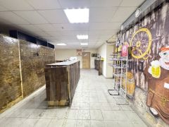 В основной части зала на 1 этаже установлена барная стойка, и холодильное оборудование под разливные напитки, при необходимости можно все демонтировать тк это все из гипсокартона и будет свободная планировка торгового зала