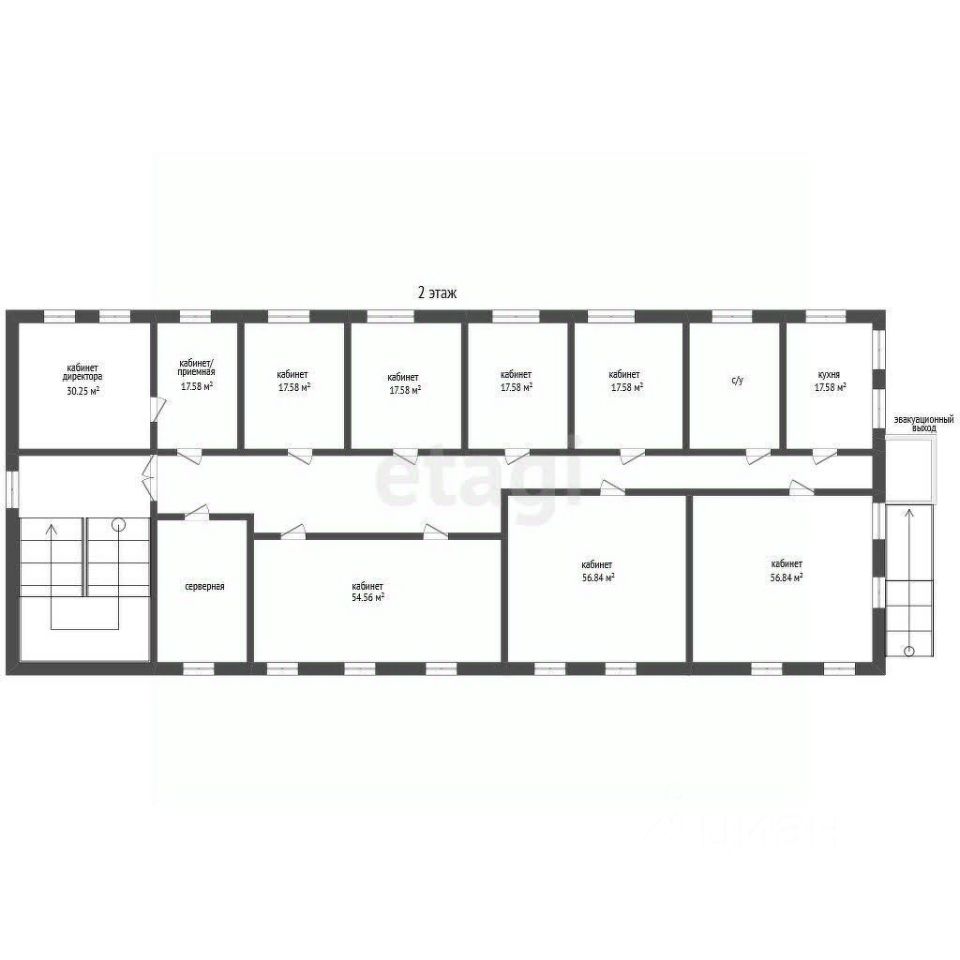- 30,25 кв.м.- кабинет директора + 17,58 кв.м. - приемная,