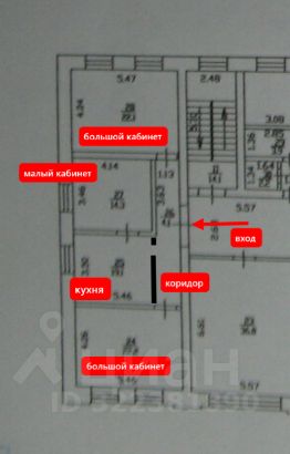 82 квадратных метра, разбиты на коридор, кухню и 3 рабочих кабинета. При желании из кухни можно сделать четвёртый кабинет.