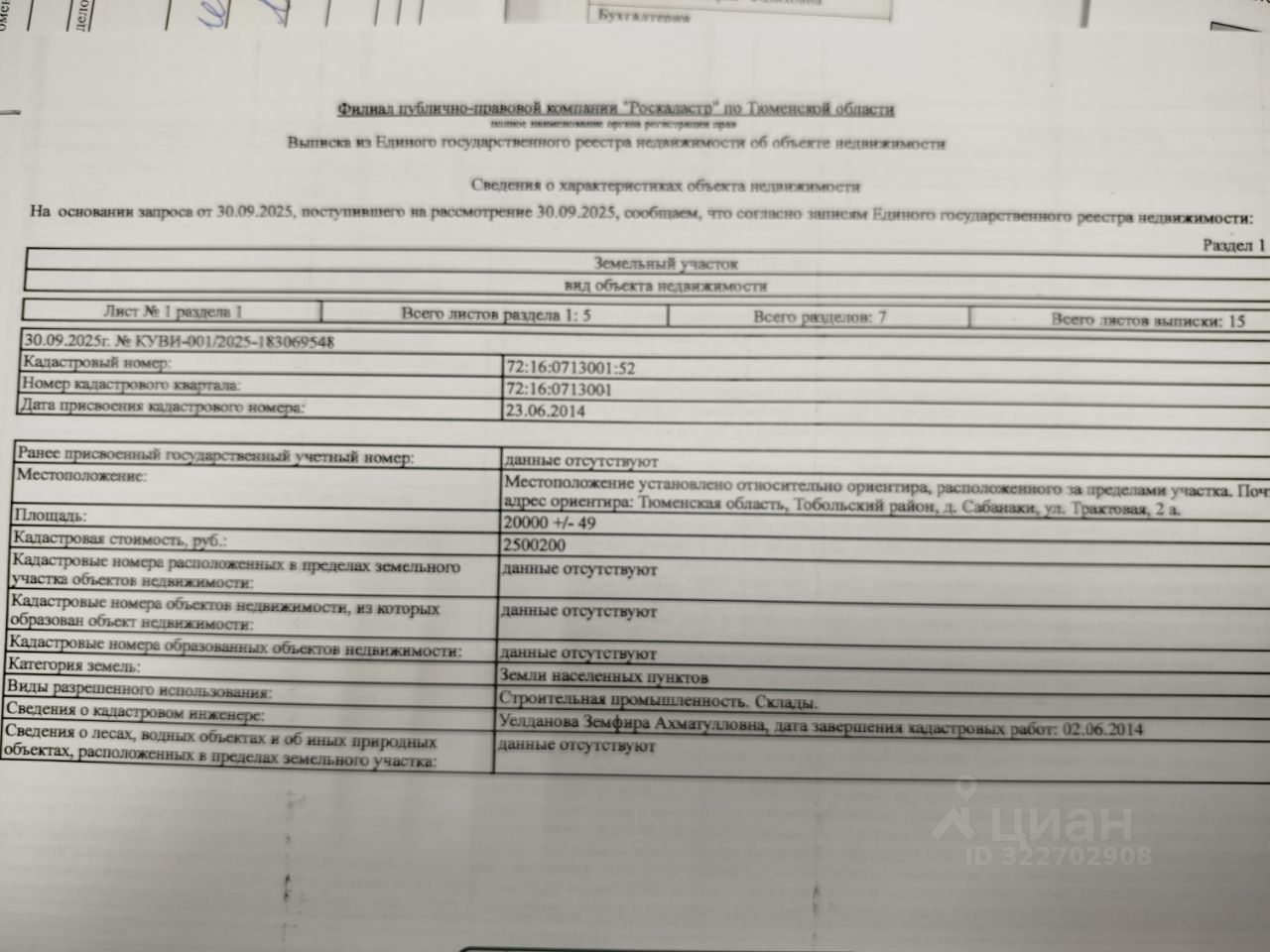 Право на заключение договора аренды на земельный участок с кадастровым номером 72:16:0713001:52, расположенный по адресу: Тюменская область, Тобольский район, д.Сабанаки, ул. Трактовая, 2А