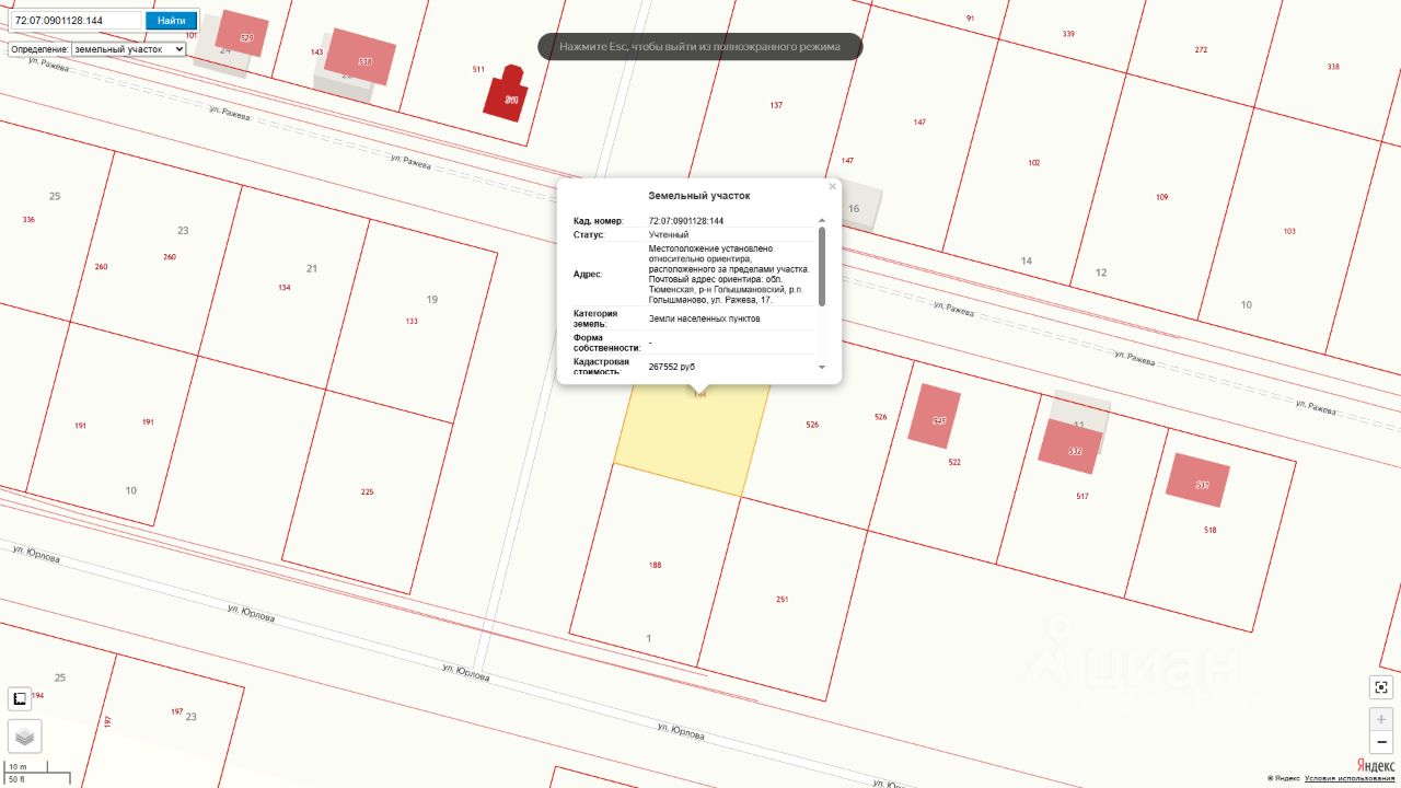 земельный участок, расположенный по адресу: Тюменская область, район Голышмановский, р.п. Голышманово, ул. Ражева, 17, кадастровый номер 72:07:0901128:144