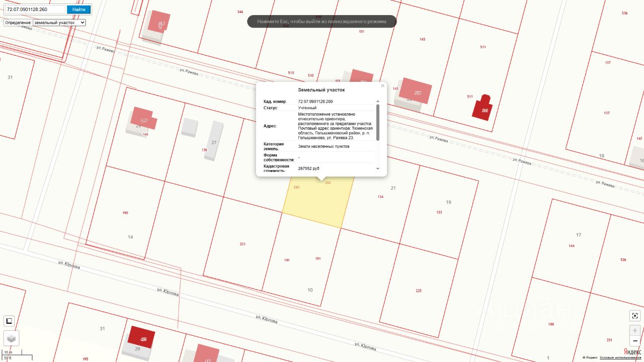 земельный участок, расположенный по адресу: Тюменская область, Голышмановский район, р.п. Голышманово, ул. Ражева, 23, кадастровый номер 72:07:0901128:260