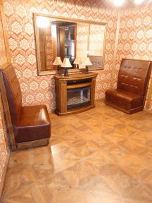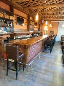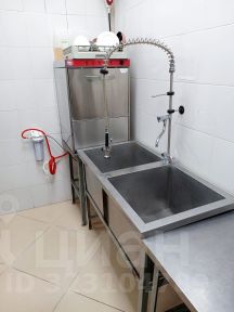 Раньше располагался бар. Осталось все оборудование (в зале и на кухне).