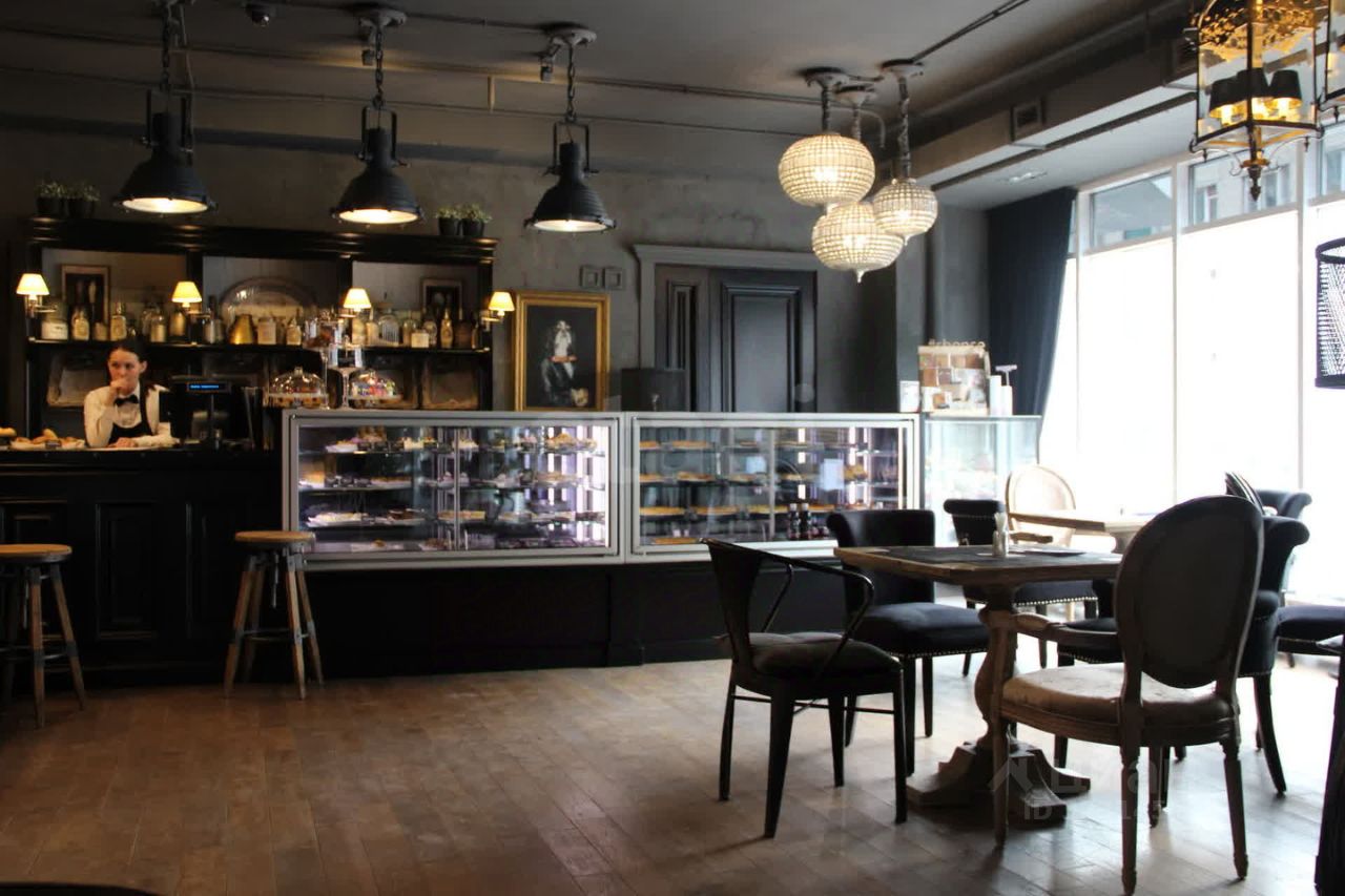 Интерьер полностью готов к эксплуатации и оформлен в современном стиле. На данный момент оно оснащено кондитерскими витринами, столами, стульями и профессиональным торговым оборудованием.