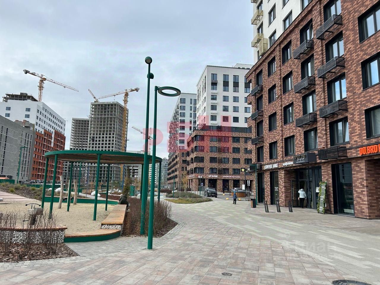 рядом пешеходный бульвар и детская игровая зона