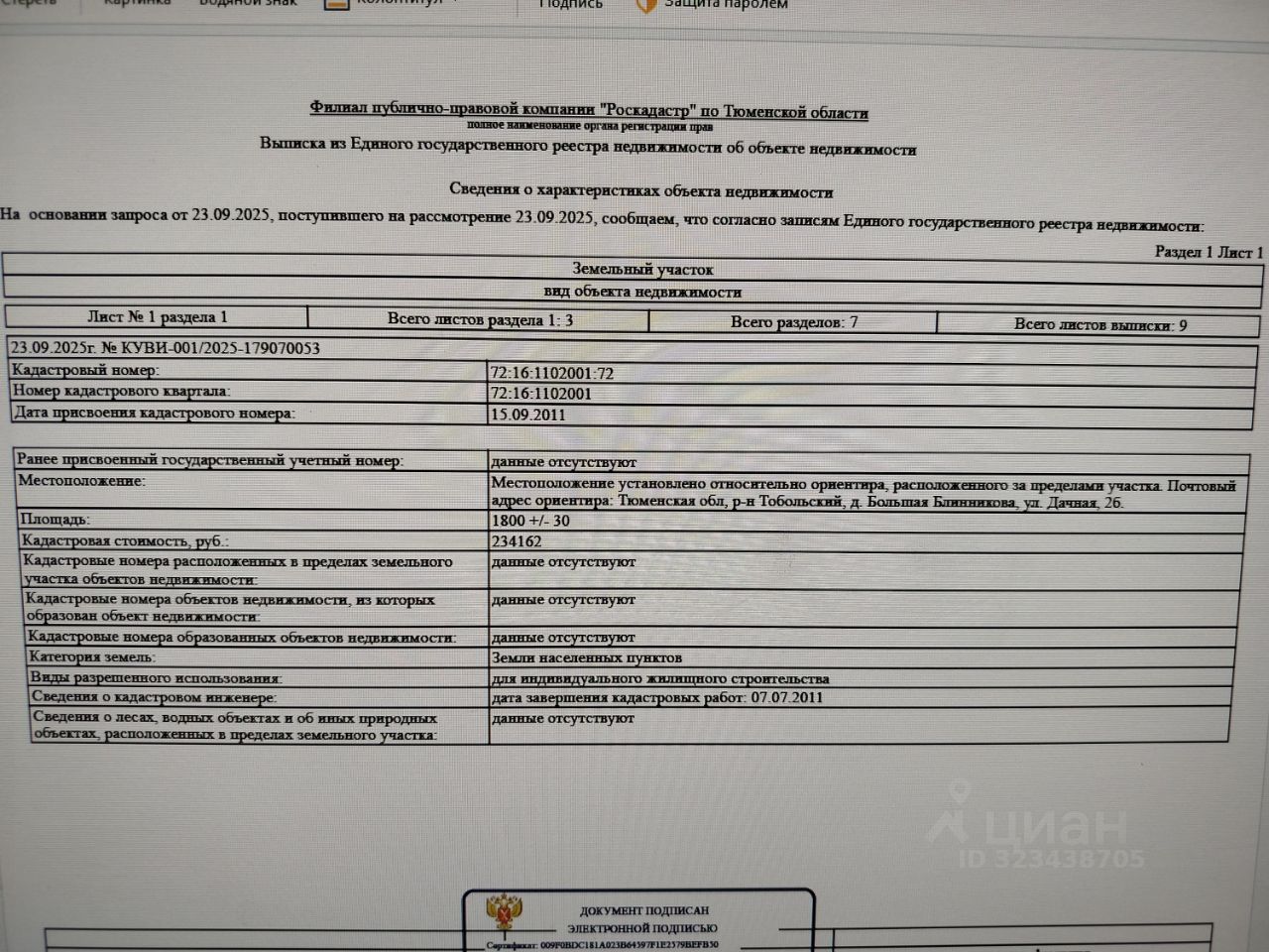 Право на заключение договора аренды на земельный участок с кадастровым номером 72:16:1102001:72, расположенный по адресу: Тюменская область, Тобольский район, д.Большая Блинникова, ул. Дачная, 2Б
