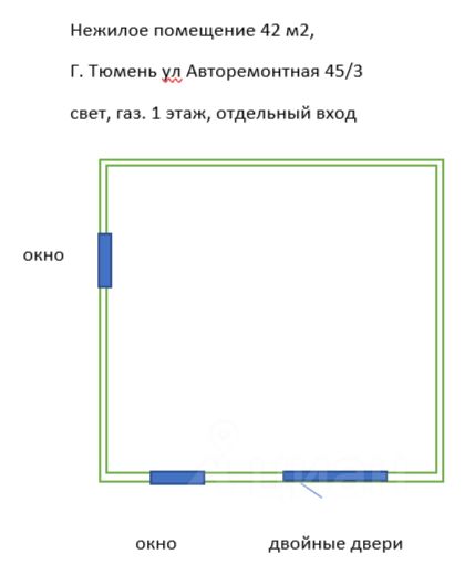Сдаётся нежилое отапливаемое помещение 42 м2.стоимость 33000 руб в месяц . Адрес ул Авторемонтная 45 стр 3, пом. 4. Под производство, склад. Газ , свет (по счетчику). Высота потолков 3,5-4 м. Двойная широкая дверь . 220 и 380 вт. Территория под видеонаблюдением и охраной. Возможность арендовать открытую площадку около помещения. Парковка автотранспорта около помещения. Доступ к помещению 24/7. Находиться в 500 м от Объездной дороги. на территории может разворачиваться фура. Хорошая транспортная развязка - конечная автобуса 14. с видеонаблюдением внутри и снаружи