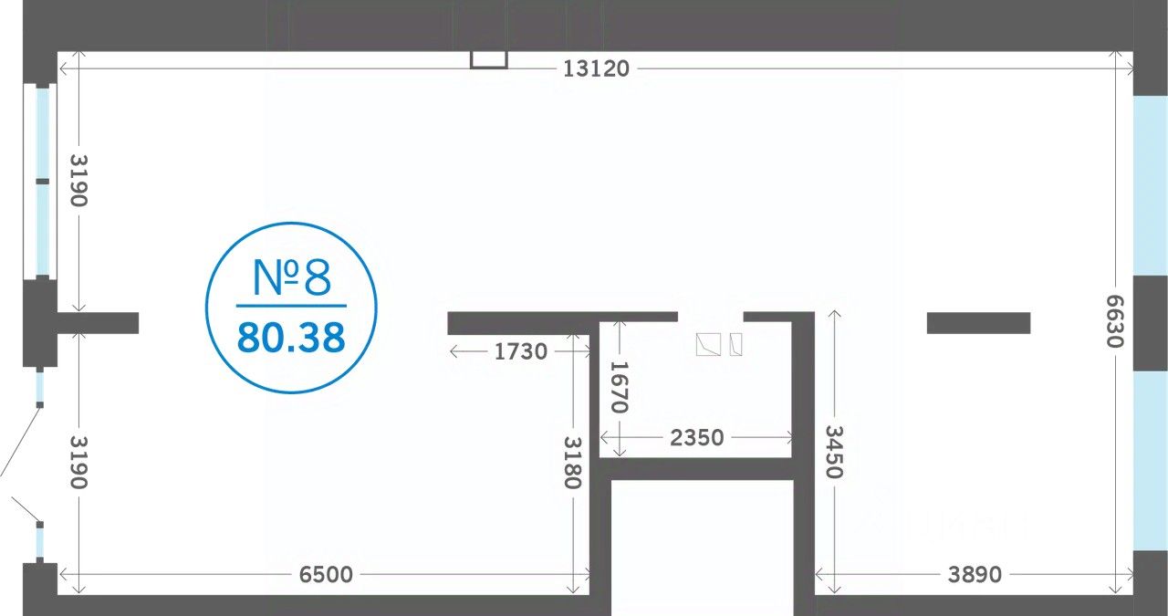 Помещение свободного назначения на 1 этаже, общая площадь 80.38 кв.м. Стоимость аренды 80,380 руб. в месяц, это 1000 руб. за кв.м.