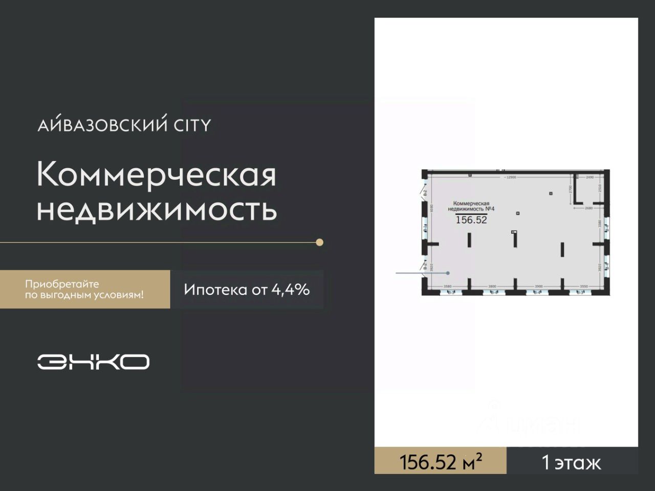 Помещение свободного назначения на 1 этаже, общая площадь 156.52 кв.м. Стоимость аренды 203,476 руб. в месяц, это 1300 руб. за кв.м.