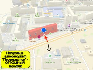Через дорогу БОЛЬШОЙ сетевой гипермаркет, генерящий огромный трафик.
