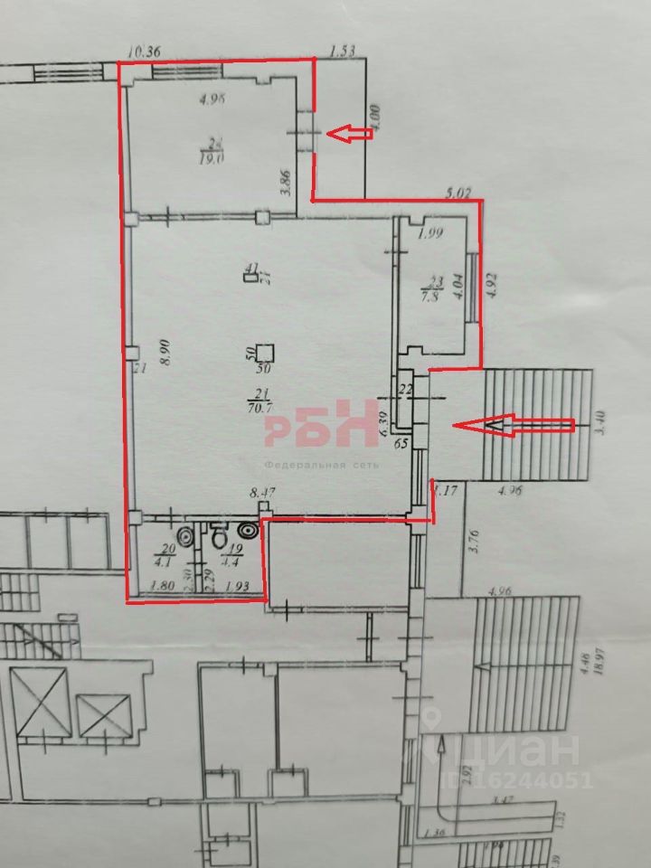 - торговый зал 70 кв., кабинет руководителя 7,8 кв.м, склад 19 кв.м;