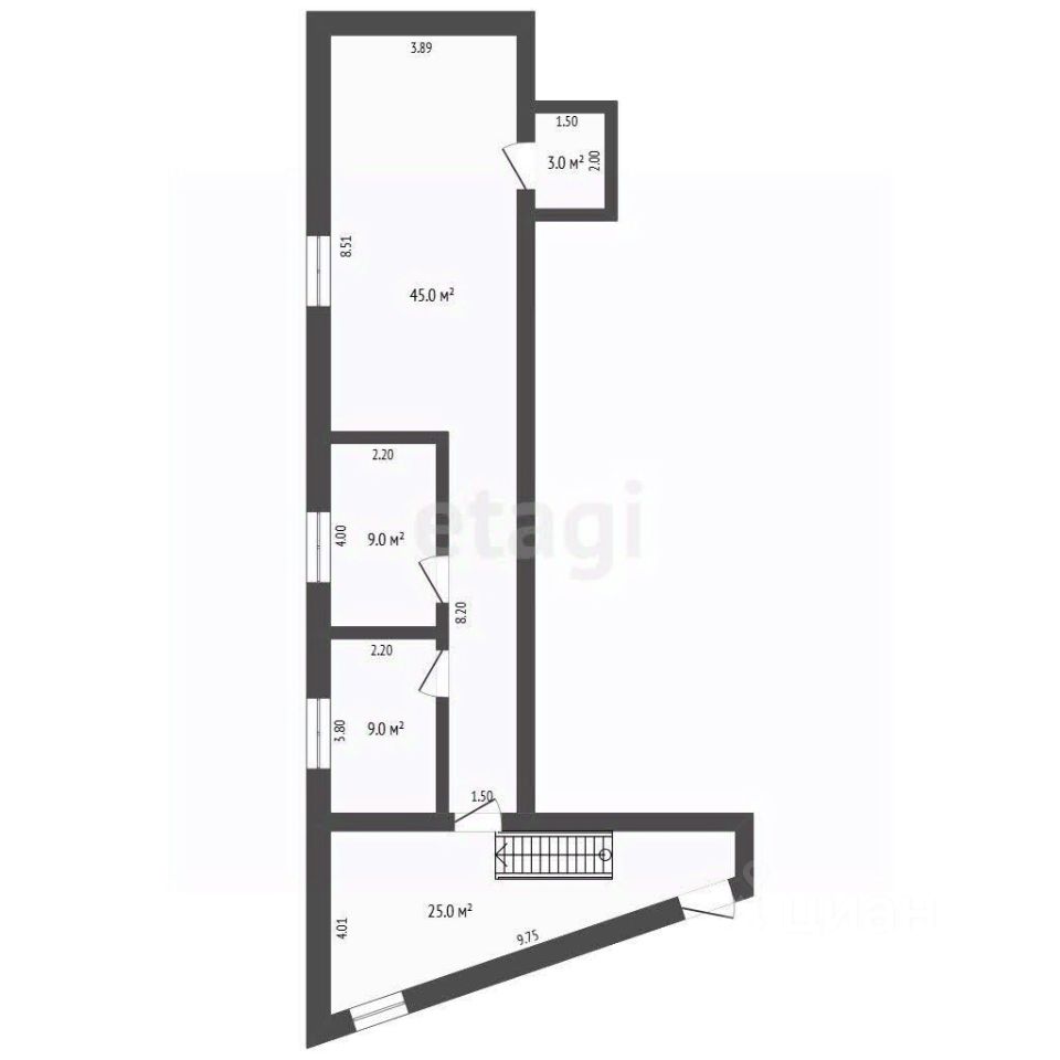 Общей пощадью 63 кв.м Планировка Кабинетная от 10 кв. м