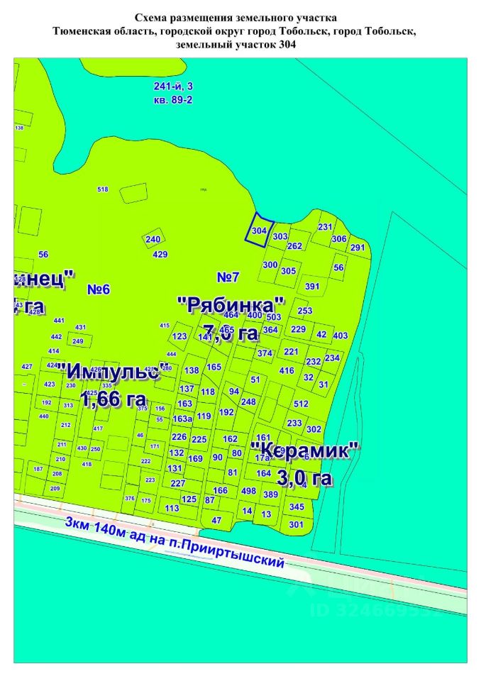 Адрес (местоположение) Тюменская область, городской округ город Тобольск, город Тобольск, земельный участок 304, кадастровый номер: 72:24:0503001:1125, площадь 1250 кв.м; разрешенное использование ведение садоводства; категория земель земли населенных пунктов.