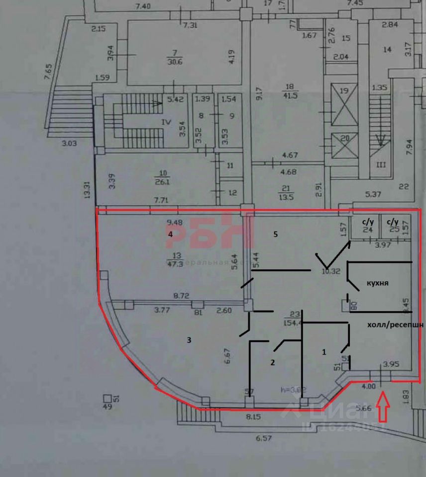 холл-ресепшн, кухня, 2 раздельных с/у;
