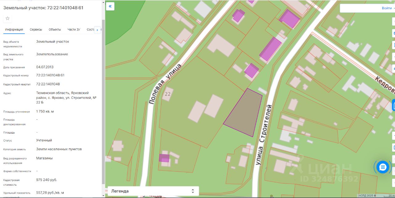 земельный участок расположенный по адресу: Тюменская область, Ярковский район, с. Ярково, ул. Строителей, 22 Б