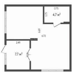 В помещении выполнен ремонт: проложено электричество (розетки и выключатели) стены оштукатурены под покраску ( выбор цвета стен на ваш вкус), на пол уложен керамогранит, в санузле керамогранит и установлена сантехника