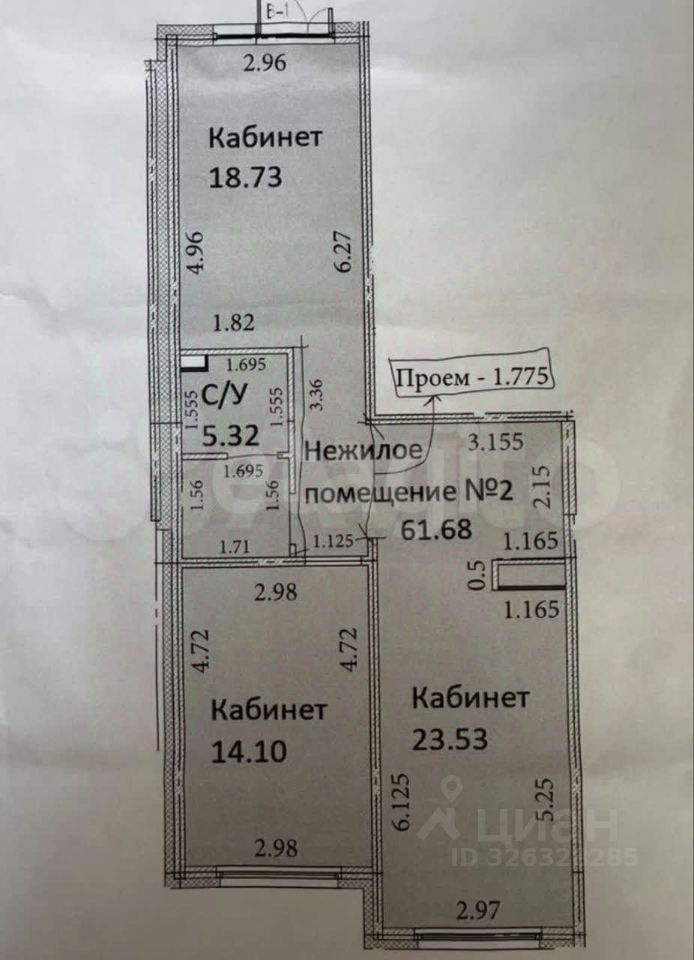 - Высота потолков: 2,7м;