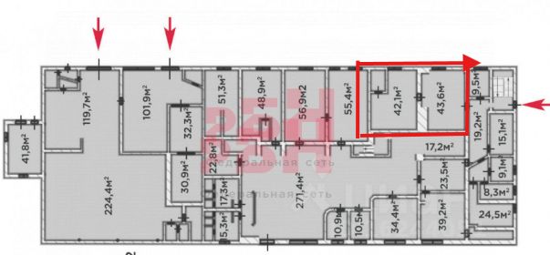 - два смежных кабинета 42, 1и 43, 6 м²;