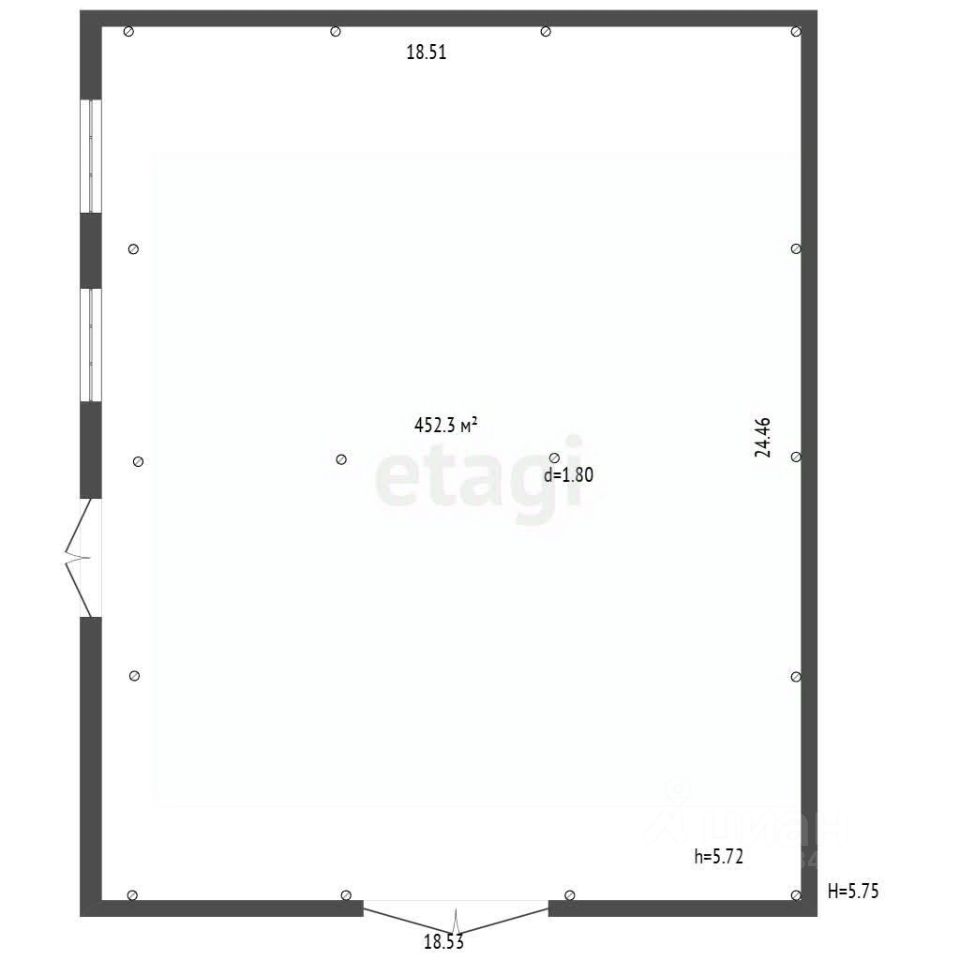 Сдается в аренду складское помещение площадью 452,3 квадратных метра, идеально подходящее для хранения товаров или организации производства. Склад некапитального строения, что обеспечивает гибкость в использовании пространства.